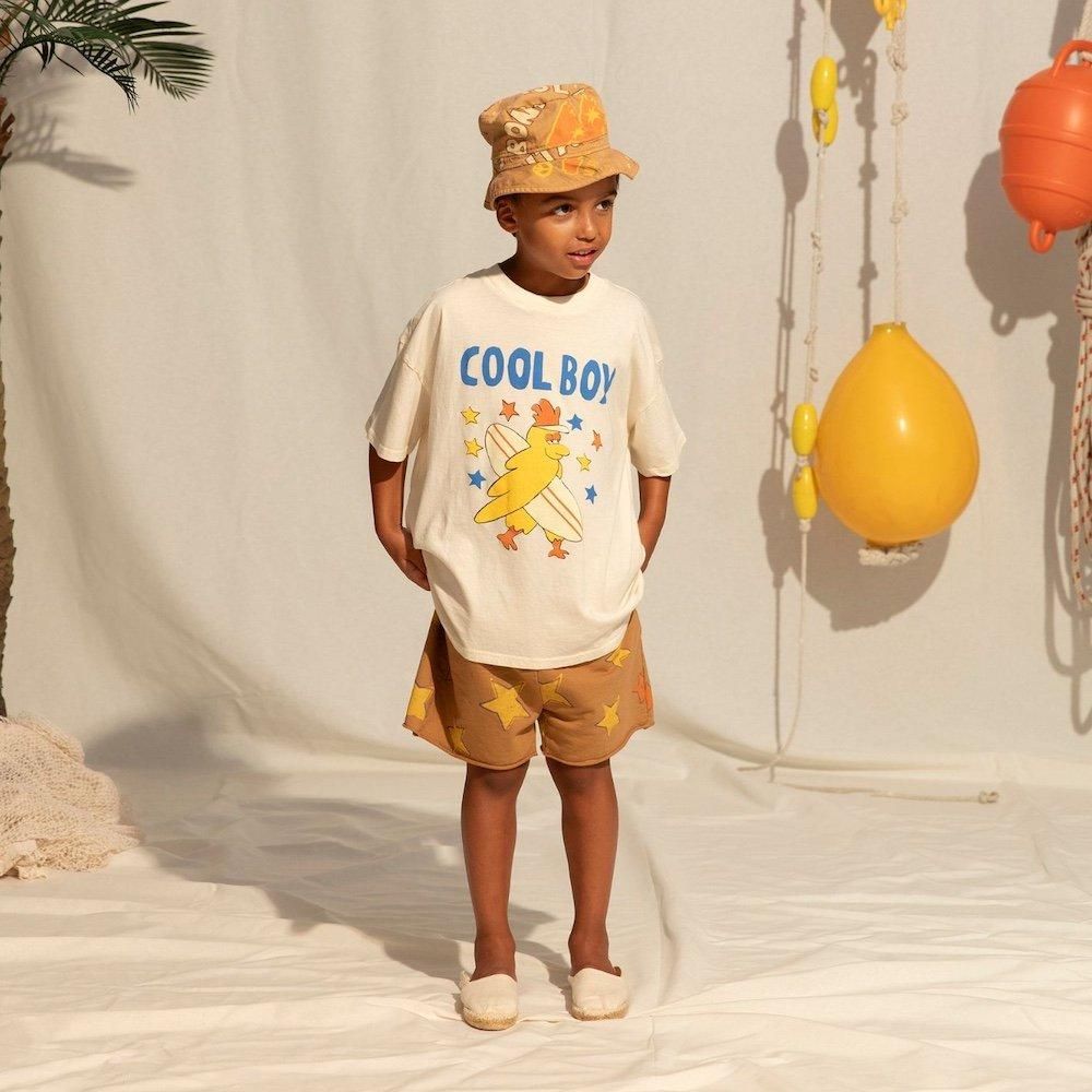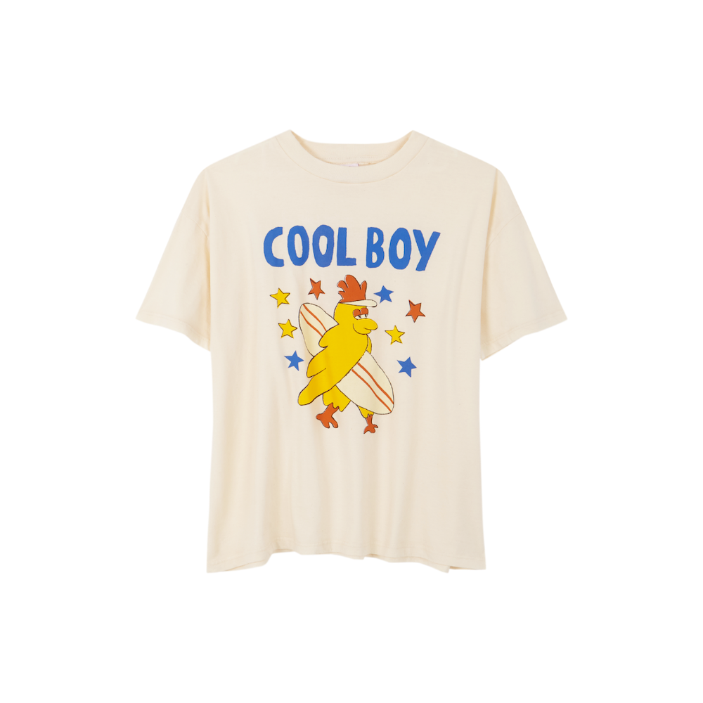 ベージュ寄りのオフホワイトに、インパクトのある「COOL BOY」のプリントが映える一枚。やる気があるのかないのかわからないクールな目が印象的です。